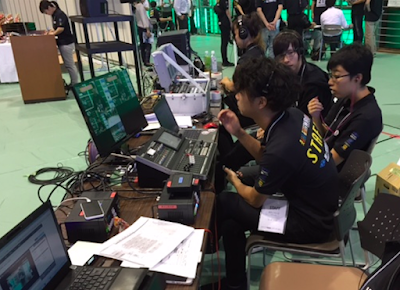 東京工科大学インテブロでは、毎年この大会のネット中継を担当していますが、今年も1〜2年生を中心にしたフレッシュな14名のチームで、現場での撮影に臨みました。リーダーは2年生の谷岡さん。豊田さんら3年生のバックアップを受けながらチームをまとめてくれています。リーダーも女子ですが、事比のチームは、なんと女子率が60%越え。このところ、インテブロでは女子の活躍が目立ちます。
