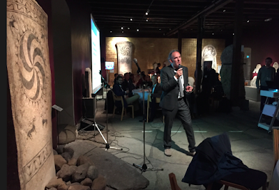 こうして発表は無事に終わり、この後は国際会議ならではの趣向をこらしたレゼプションです。なんとその会場とは「ヴィスビー博物館」なのです! この世界遺産の街の歴史的な宝物を集めたその博物館ロビーが会場だなんて信じられますか? 中世から残る石碑(ホンモノですよ)が並ぶ、その横でレセプション晩餐会です。これには、びっくりしました。